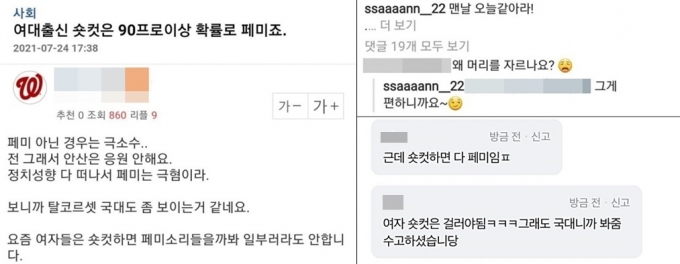Jul 29, 2021 · 안산 선수 지켜라…'페미' 비난에 양궁협회 게시판 불났다 중앙일보 입력 2021.07.29 01:37 수정 2021.07.29 01:54 인쇄 기사 보관함(스크랩) 글자 작게. Jul 29, 2021 · 안산 선수가 과거 소셜미디어에 쓴 언행과 외모를 근거로 '페미니스트는 믿고 거른다' 등의 부적절한 비난을 남발하기 시작한 것이다. Jul 29, 2021 · "안산 선수 지켜라" '안티페미' 공격에 불난 양궁협회 게시판. 1 day ago · 숏컷마마무(레즈/페미 팬덤이 가장 많은 아이돌)여대 출신오조오억화제의 웅앵웅커뮤니티에서 한남타령하던 작가 팔로잉 여배우 라는 단어를 트집잡는 이주영 팔로잉.트위터 리트윗.(인스타와 같은 아이디)판단은 알아서처음엔 남혐하려는 여초애들이 억지로 논란만들어서 남자들. Jul 28, 2021 · e글중심안산 선수 숏컷에 페미 싫어 응원 안 한다고?